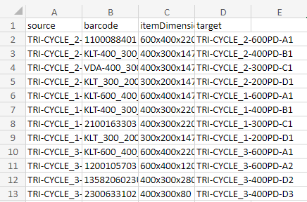 It is also possible to input a transport job as a CSV-file: